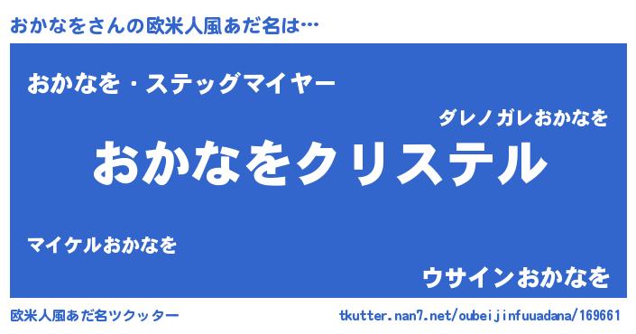 | 意味不明あだ名 | 『おかなをフォーエバー』『自称おかなを』 |
