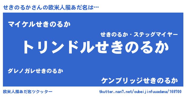 | 男性向けラノベタイトル風あだ名 | 『転生したらせきのるかだった件』 |