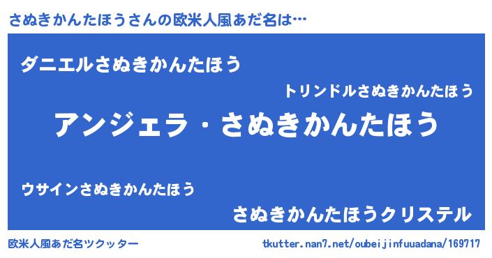 | 男性向けラノベタイトル風あだ名 | 『さぬきかんたほうに滅ぼされるだけの簡単なお仕事です』 |