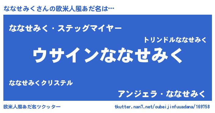 | 意味不明あだ名 | 『とにかく怪しいななせみく』 |