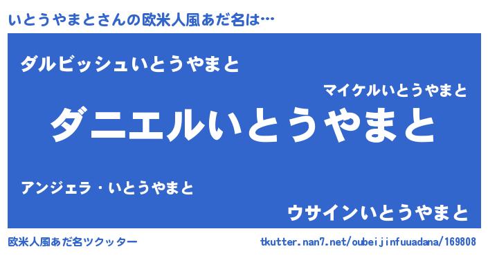 | 男性向けラノベタイトル風あだ名 | 『おまえをオタクにしてやるから、俺をいとうやまとにしてくれ! 』 |