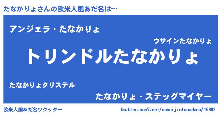 | 男性向けラノベタイトル風あだ名 | 『たなかりょ~年齢イコール彼女いない歴の魔法使い~』 |