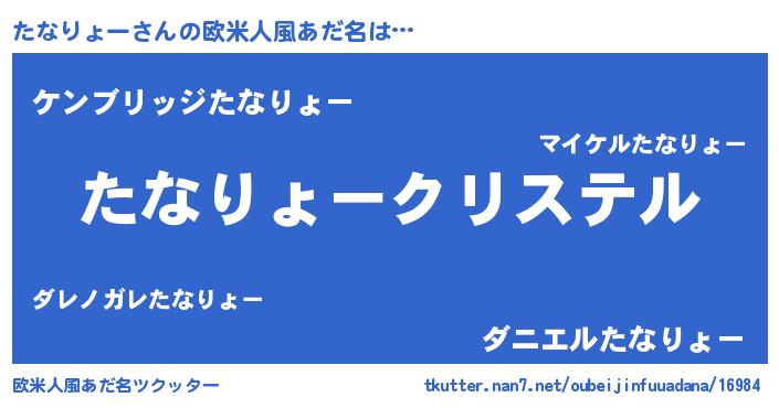| 意味不明あだ名 | 『たなりょーフォーエバー』 |