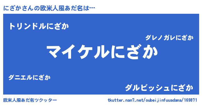| 男性向けラノベタイトル風あだ名 | 『ニザカアートオンライン』 |