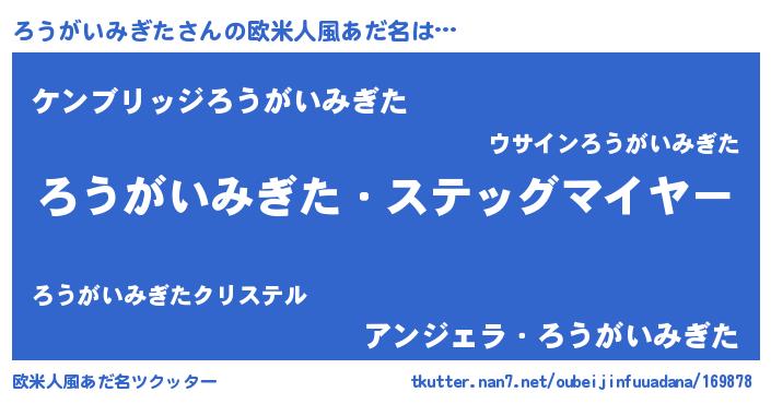 | 意味不明あだ名 | 『自称ろうがいみぎた』 |
