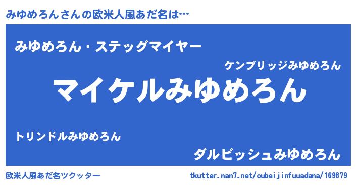 | 女子向けラノベタイトル風あだ名 | 『(仮)みゆめろんのやんごとなき事情』 |