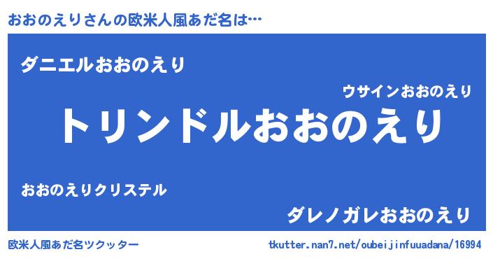 | 男性向けラノベタイトル風あだ名 | 『おおのえり~年齢イコール彼女いない歴の魔法使い~』 |
