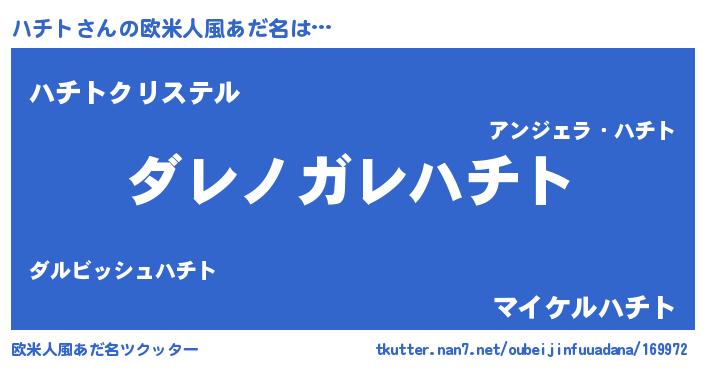 | 男性向けラノベタイトル風あだ名 | 『魔弾の王とハチト』『ハチトの憂鬱』 |