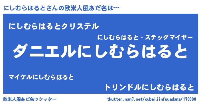 | 肩書あだ名 | 『にしむらはると助手』 |
