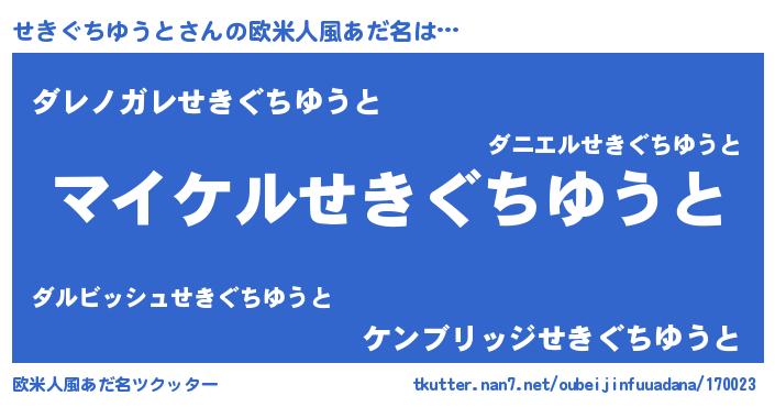 | 男性向けラノベタイトル風あだ名 | 『セキグチユウトアートオンライン』 |