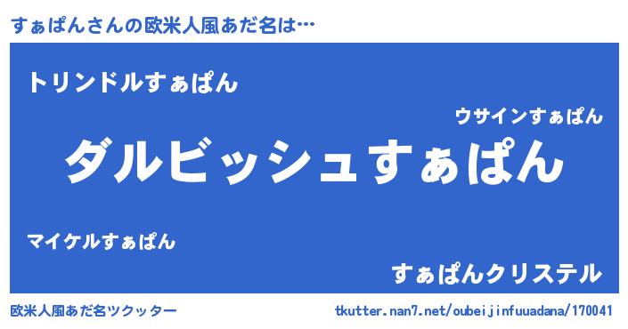 | 胡散臭い通販商品みたいなあだ名 | 『絶対に幸福をもたらす水素水…その名も「すぁぱん」』 |