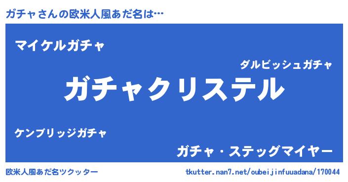 | ヒーロー風カッコイイあだ名 | 『ウルトラガチャマン』『スーパーガチャ』 |