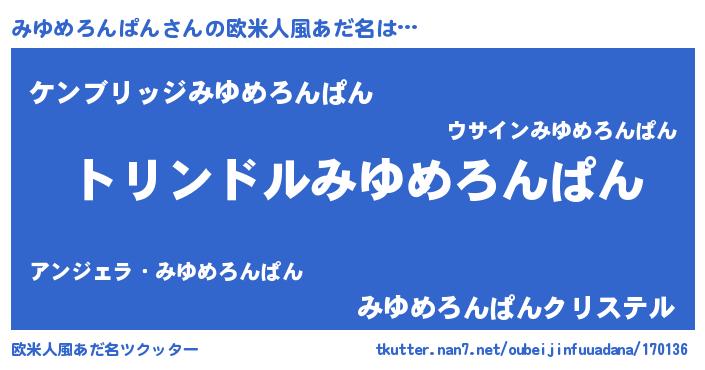 | 男性向けラノベタイトル風あだ名 | 『ミユメロンパンスレイヤー』 |