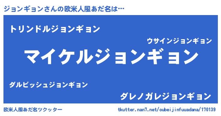 | 男性向けラノベタイトル風あだ名 | 『ジョンギョンアートオンライン』 |