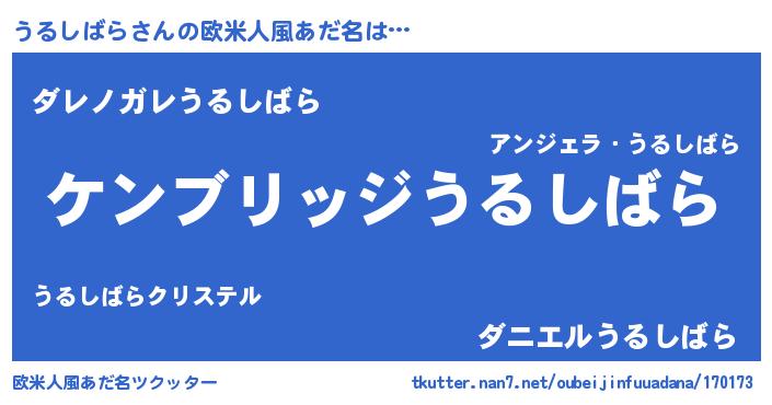 | 男性向けラノベタイトル風あだ名 | 『Re:うるしばらから始める異世界生活』 |