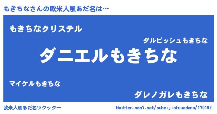 | 女子向けラノベタイトル風あだ名 | 『もきちな恋絵巻』『もきちなの契約王妃』 |