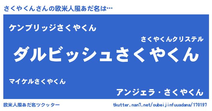 | 意味不明あだ名 | 『永久保存さくやくん』『自称さくやくん』 |