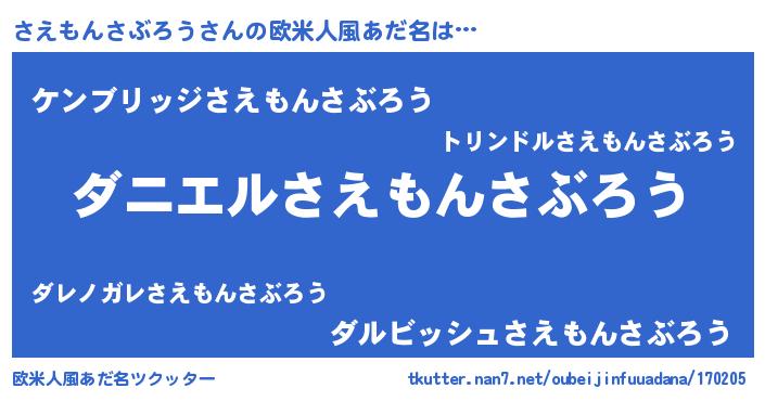 | 女子向けラノベタイトル風あだ名 | 『死神さえもんさぶろうの再婚』 |