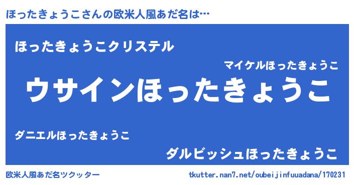 | 女子向けラノベタイトル風あだ名 | 『ほったきょうこは平凡を望む』 |