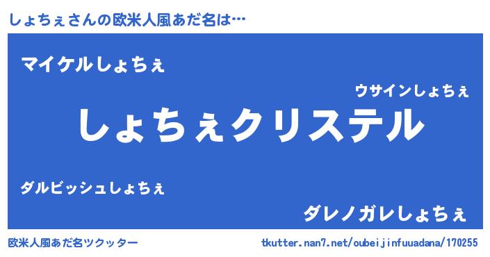 | 意味不明あだ名 | 『しょちぇフォーエバー』 |