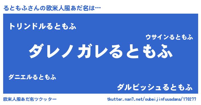 | 男性向けラノベタイトル風あだ名 | 『魔弾の王とるともふ』 |
