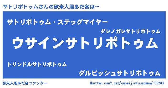 | 男性向けラノベタイトル風あだ名 | 『サトリポトゥムの嫁は女の子じゃないと思った?』 |
