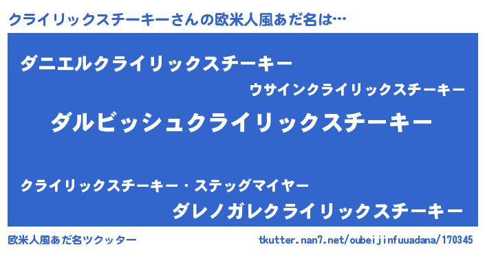 | ヘコむあだ名 | 『クライリックスチーキー(震え声)』 |