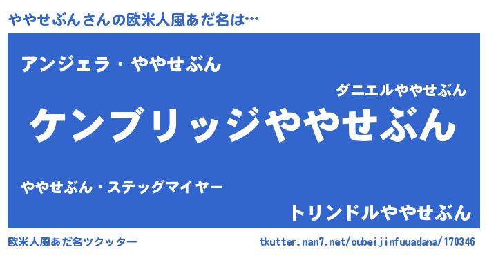 | 意味不明あだ名 | 『自称ややせぶん』『永久保存ややせぶん』 |