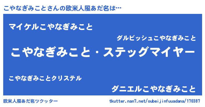 | 胡散臭い通販商品みたいなあだ名 | 『必ず成功するブレスレット…その名も「こやなぎみこと」』 |