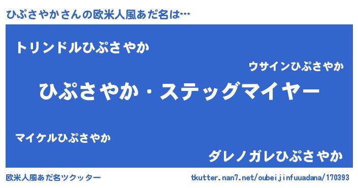| ヘコむあだ名 | 『ひぷを』『ひぷっふぃ~』『つくし』 |