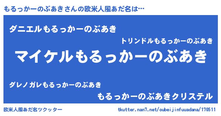 | 男性向けラノベタイトル風あだ名 | 『もるっかーのぶあきの憂鬱』 |