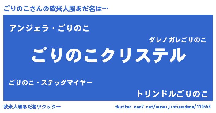 | 女子向けラノベタイトル風あだ名 | 『ごりのこの雑貨屋さん』 |