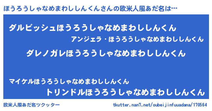 | 意味不明あだ名 | 『住所不定無職ほうろうしゃなめまわししんくん(85歳)』 |