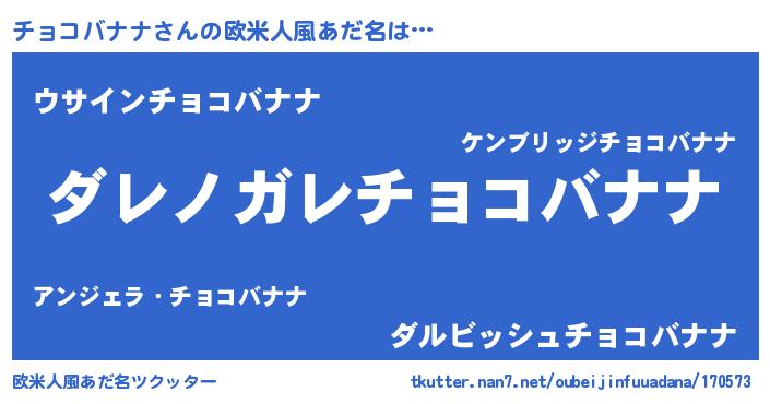 | 男性向けラノベタイトル風あだ名 | 『魔弾の王とチョコバナナ』 |