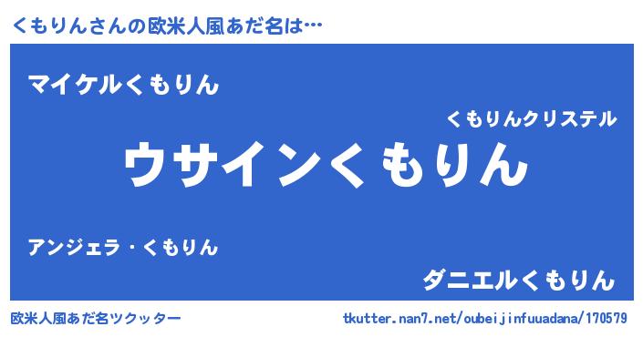| 男性向けラノベタイトル風あだ名 | 『ダンジョンにくもりんを求めるのは間違っているだろうか』 |