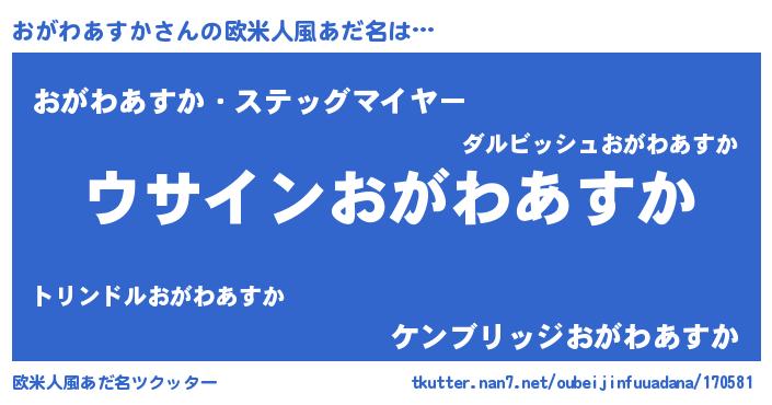 | 意味不明あだ名 | 『とにかく怪しいおがわあすか』 |