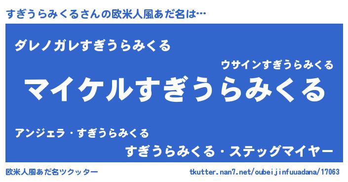 | 男性向けラノベタイトル風あだ名 | 『すぎうらみくるの憂鬱』 |