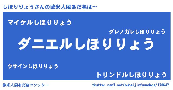 | 男性向けラノベタイトル風あだ名 | 『ノーゲーム・ノーシホリリョウ』 |