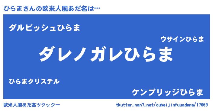 | 男性向けラノベタイトル風あだ名 | 『この素晴らしい世界にひらまを!』 |