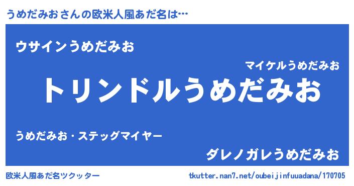 | 男性向けラノベタイトル風あだ名 | 『ウメダミオスレイヤー』 |