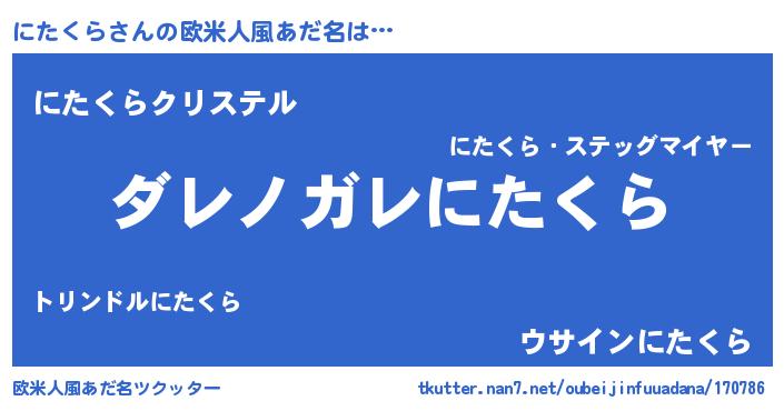 | 男性向けラノベタイトル風あだ名 | 『この素晴らしい世界ににたくらを!』 |