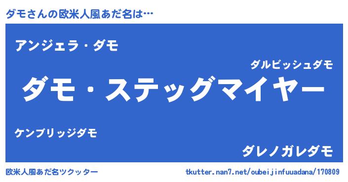 | 意味不明あだ名 | 『住所不定無職ダモ(2歳)』『永久保存ダモ』 |
