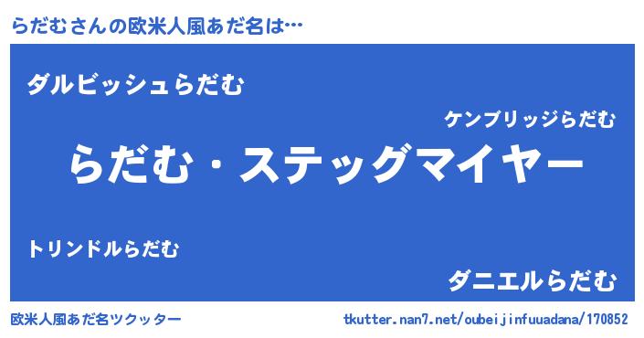 | 意味不明あだ名 | 『永久保存らだむ』『自称らだむ』 |
