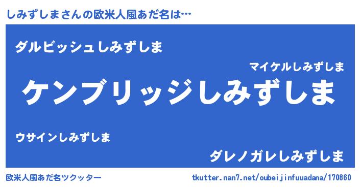 | 意味不明あだ名 | 『自称しみずしま』『永久保存しみずしま』 |