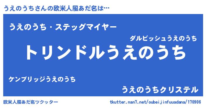 | 男性向けラノベタイトル風あだ名 | 『ウエノウチスレイヤー』 |