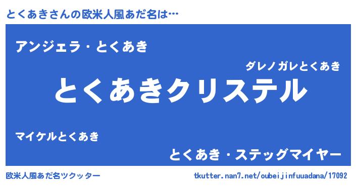 | 意味不明あだ名 | 『とくあきフォーエバー』 |