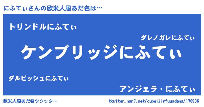 | 男性向けラノベタイトル風あだ名 | 『魔法科高校のにふてぃ』 |