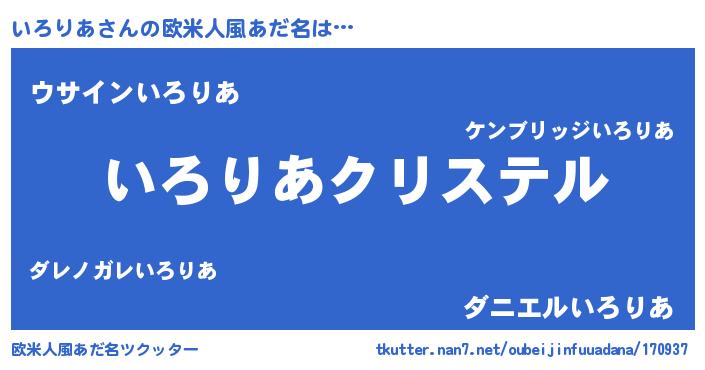| 女子向けラノベタイトル風あだ名 | 『いろりあの雑貨屋さん』 |