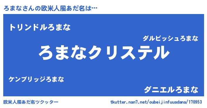 | 女子向けラノベタイトル風あだ名 | 『ろまな伯爵の花嫁』『死神ろまなの再婚』 |