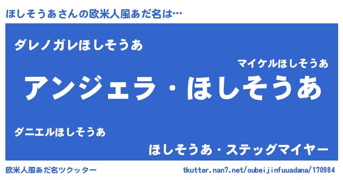 | 意味不明あだ名 | 『住所不定無職ほしそうあ(13歳)』 |